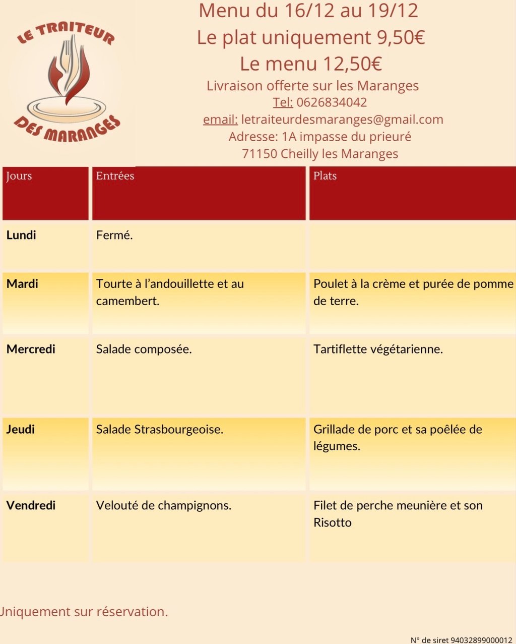 Menu de la semaine