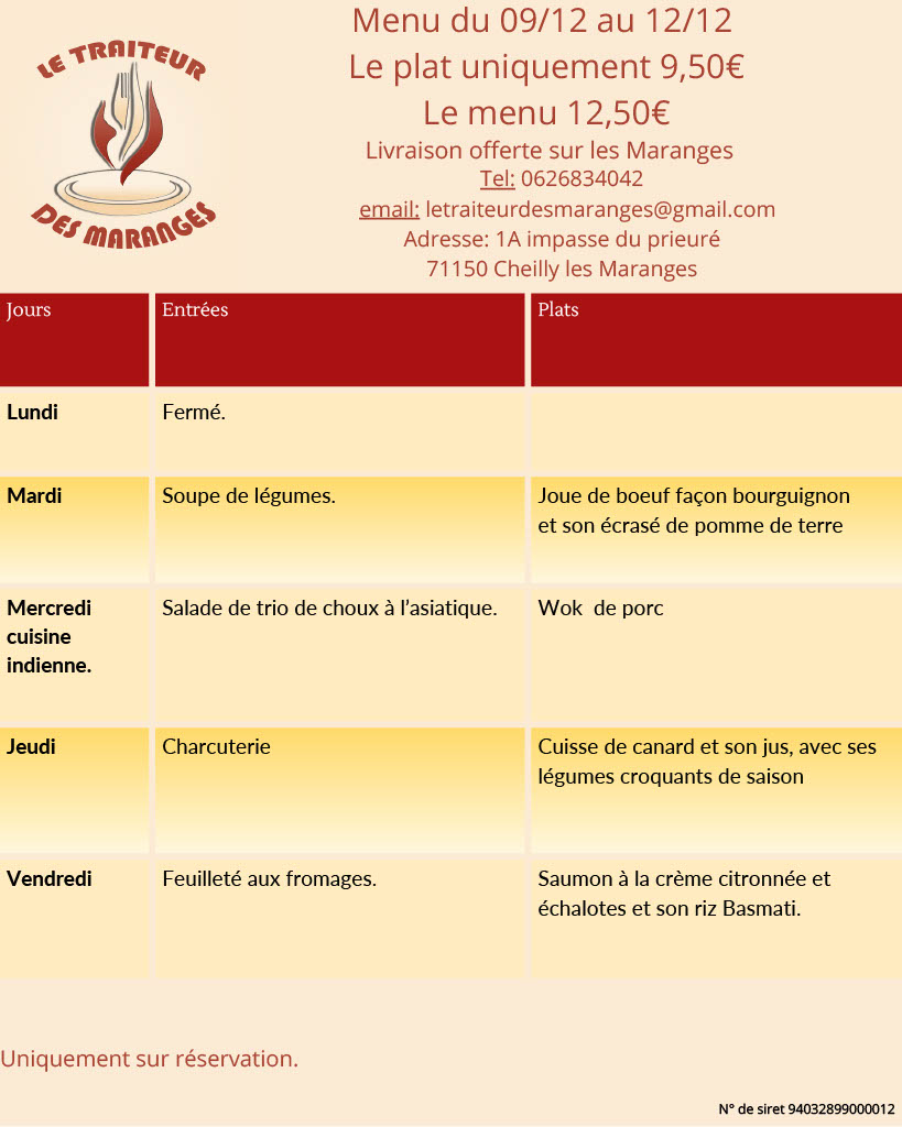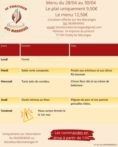Menu de la semaine