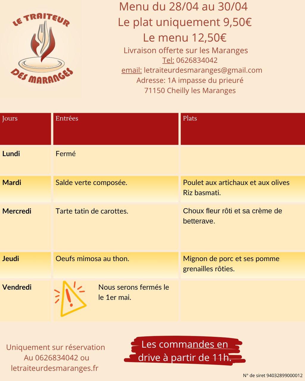 Réservez votre menu pour votre événement.