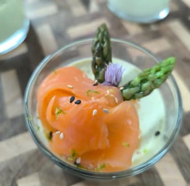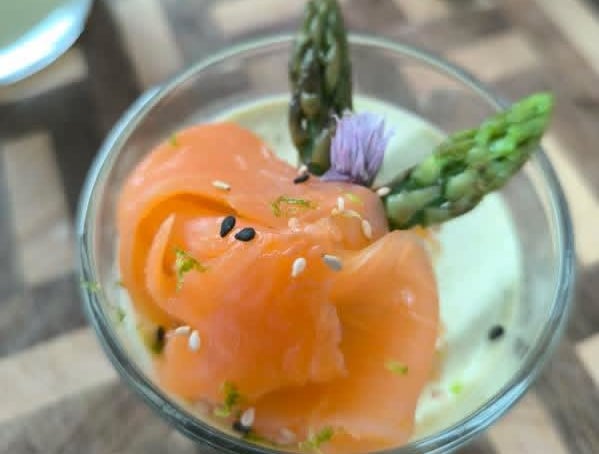 • Salade de pomme de terre, asperge et crevette.