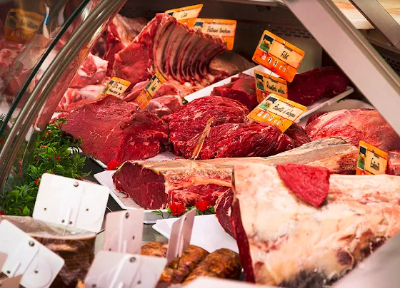Boeuf et/ou veau. Autre viande : viande de génisse charolaise, viande de galloway.
